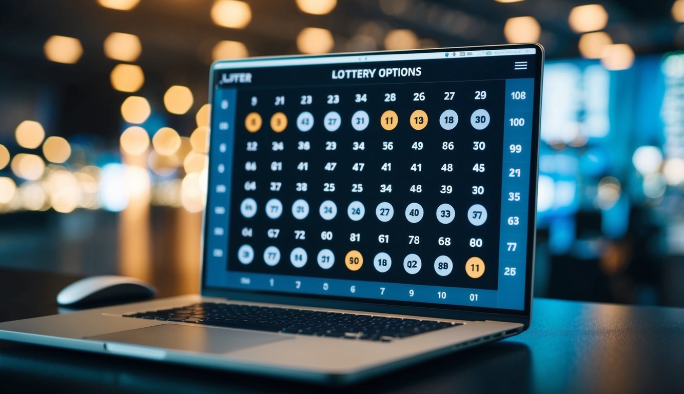Antarmuka digital yang menampilkan berbagai pilihan dan nomor lotere dengan desain yang ramping dan modern